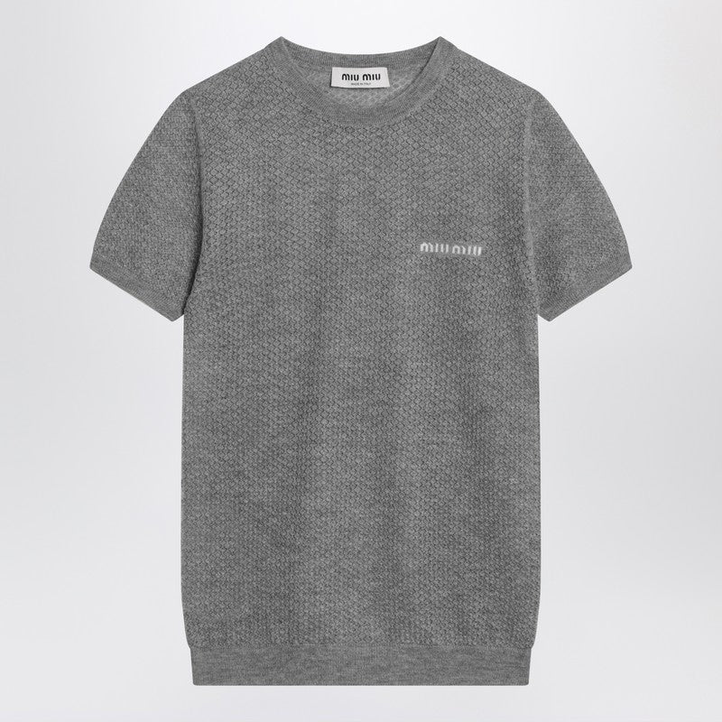 Miu Miu Gray Cashmere Sweater With Logo Women