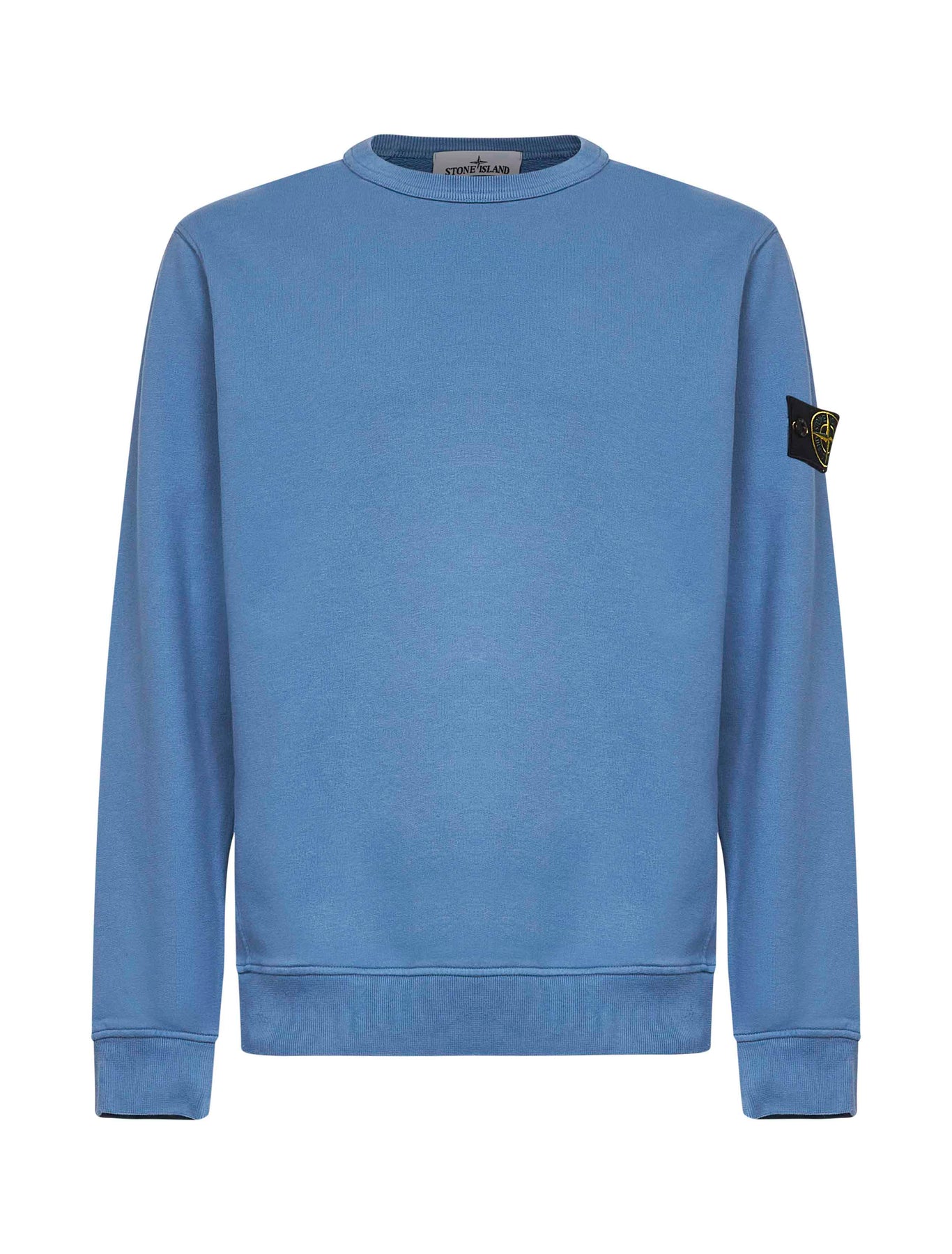 Stone Island Men Steel Blue Brushed Organic Cotton Crewneck Sweatshirt