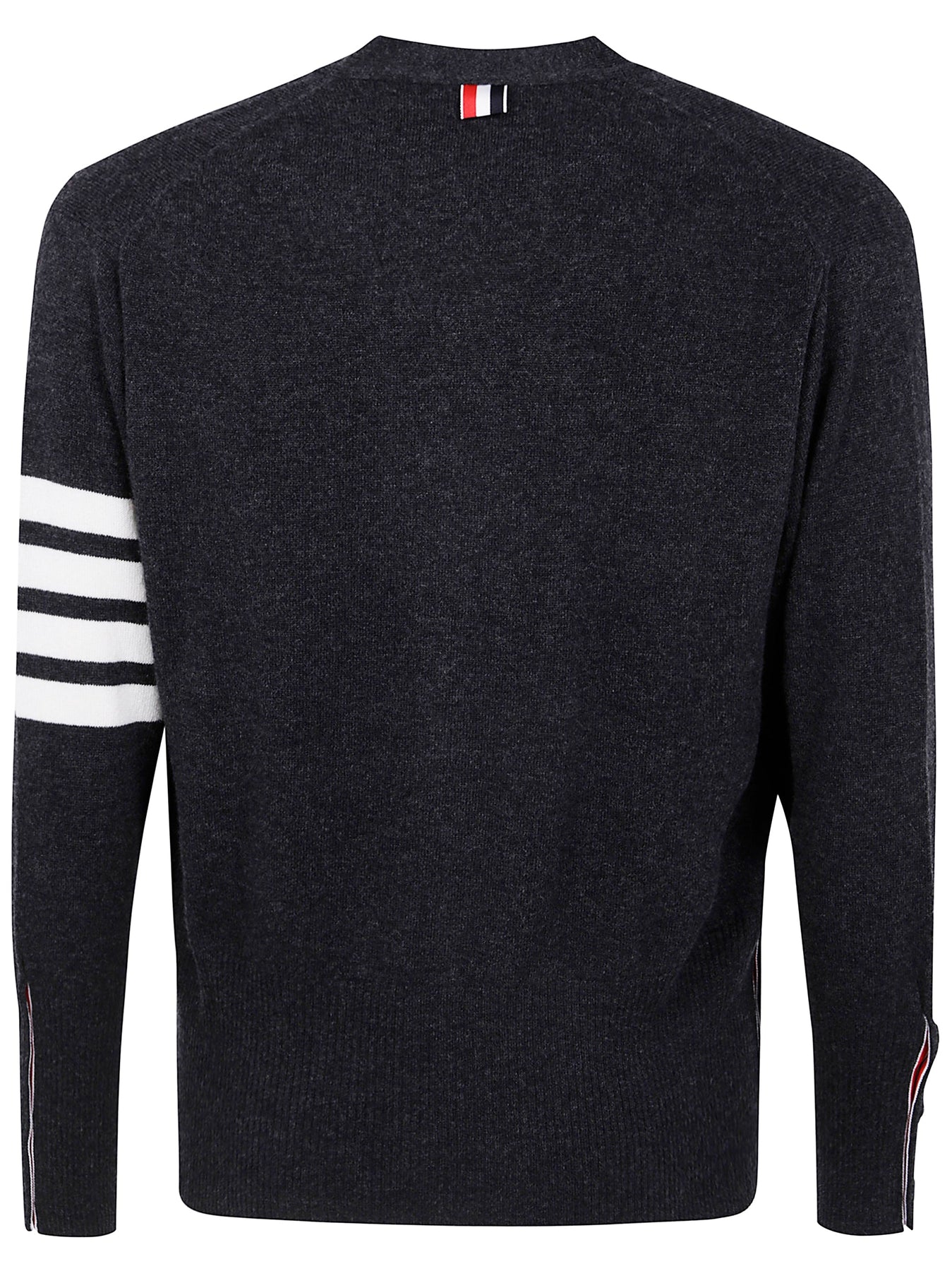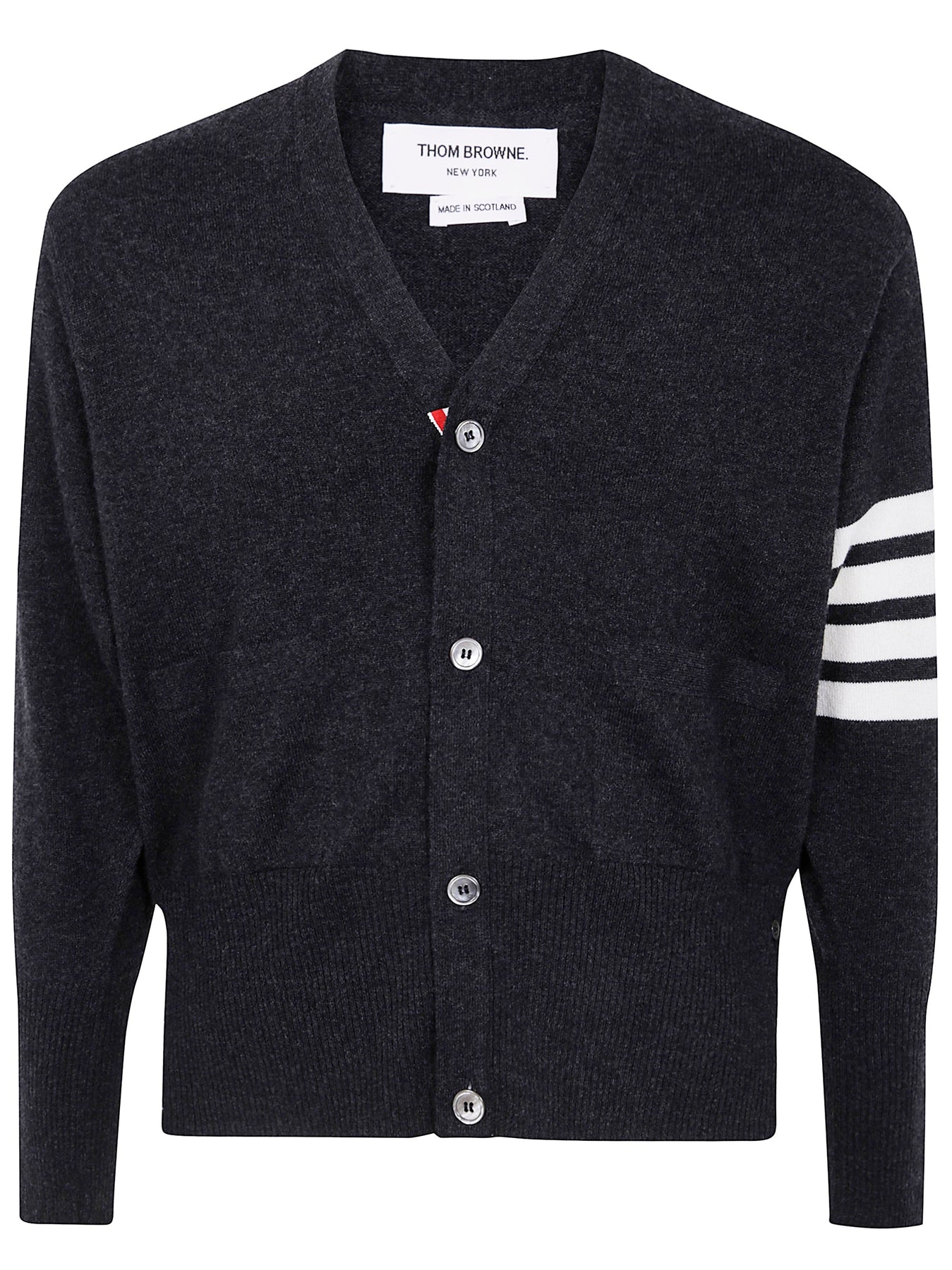 Thom Browne Men Classic Short V Neck Cardigan With White 4 Bar Stripe In Cashmere >