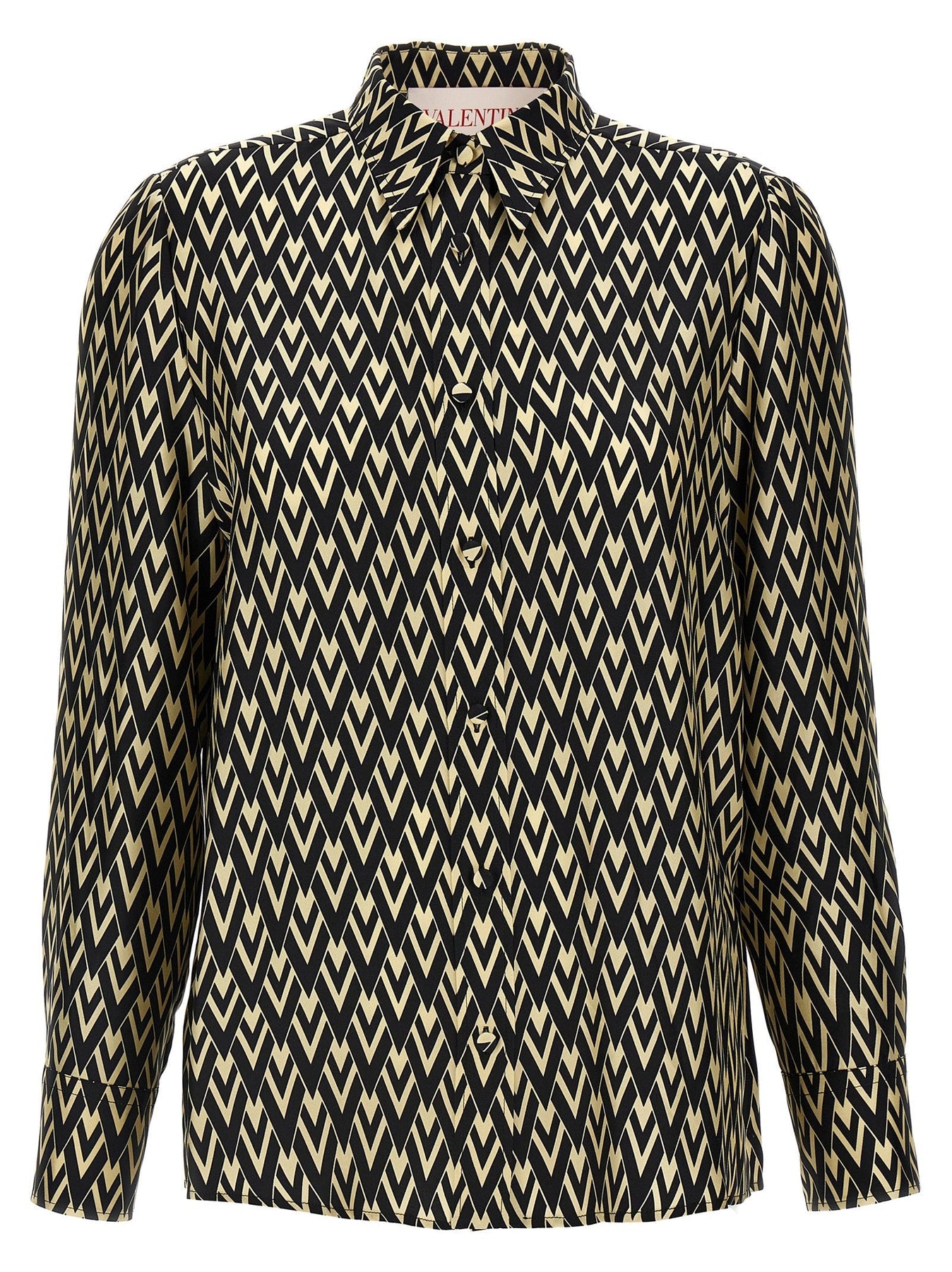 Silk shirt with all-over 'Toute la V' logo print, button closure, long cuffed sleeves.