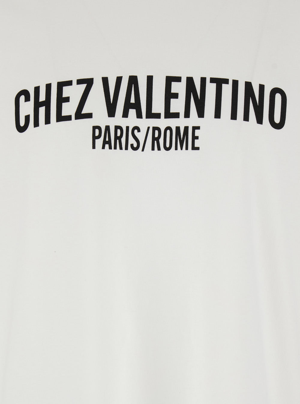 Valentino Men 'Chez' White Crewneck T-Shirt With Maxi Logo Print On The Front In Cotton Man