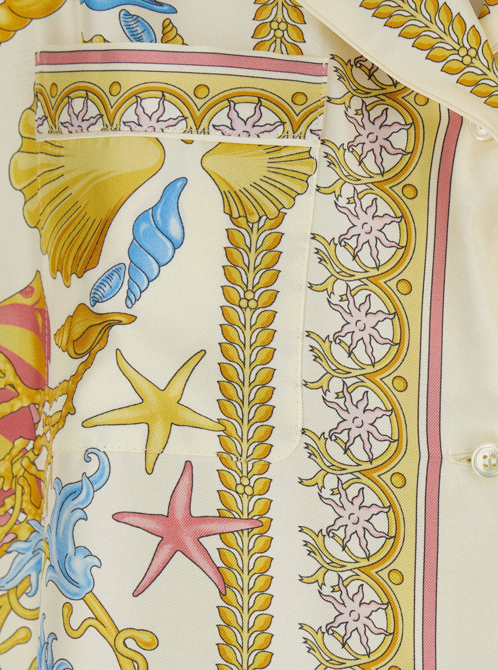 Versace Women Multicolor Bowling Shirt With Cuban Collar And All-Over Underwater Barocco Print In Silk Woman