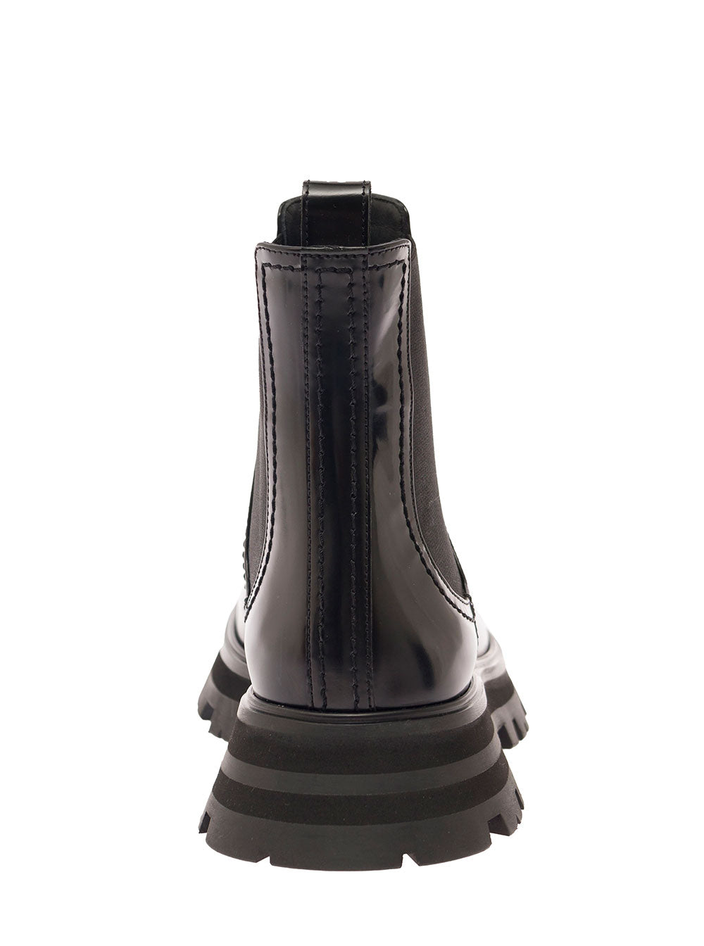 Alexander Mcqueen Women Black Chelsea Boots With Elastic Inserts In Smooth Leather Woman
