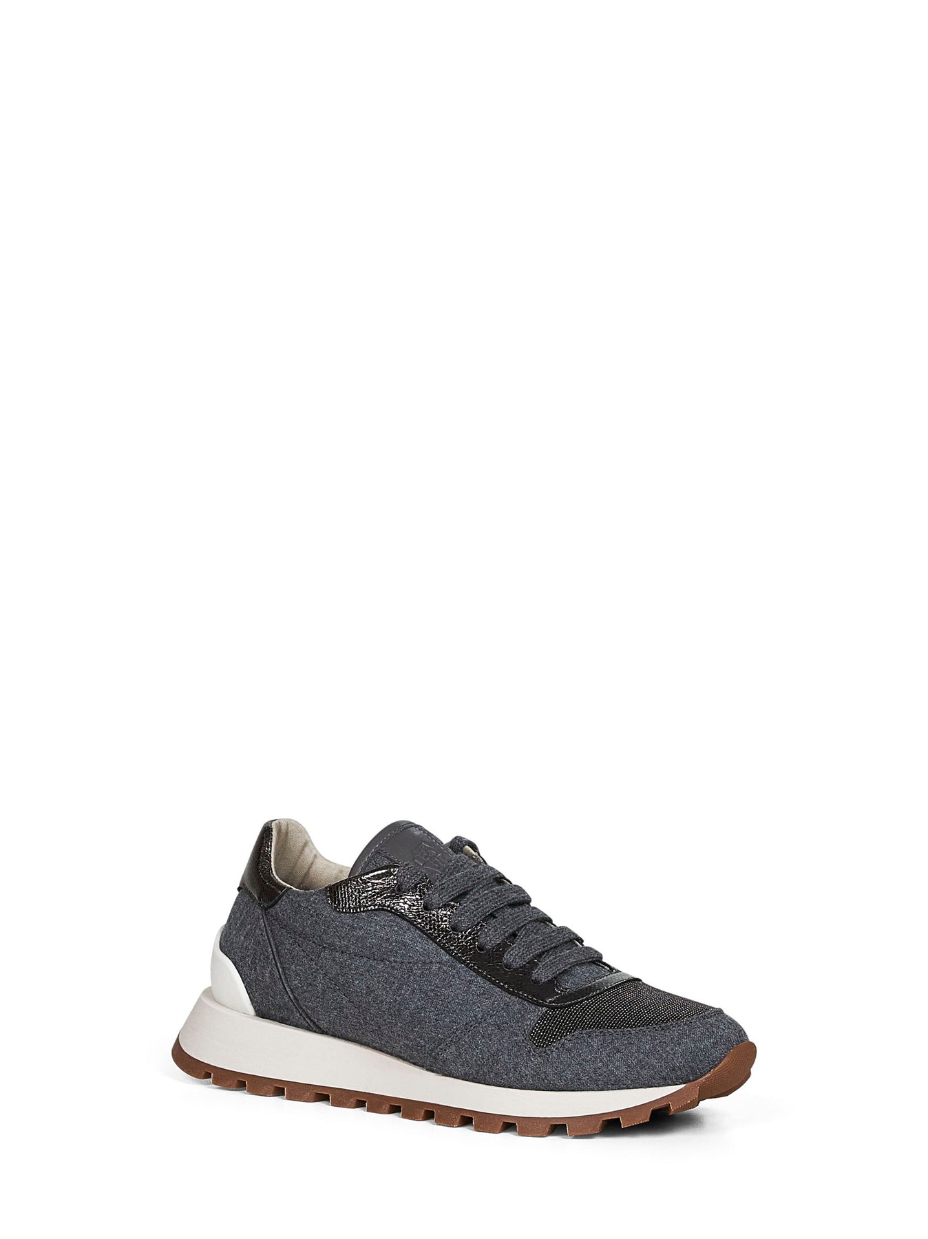 Brunello Cucinelli Women Grey Flannel Embroidered Sneakers