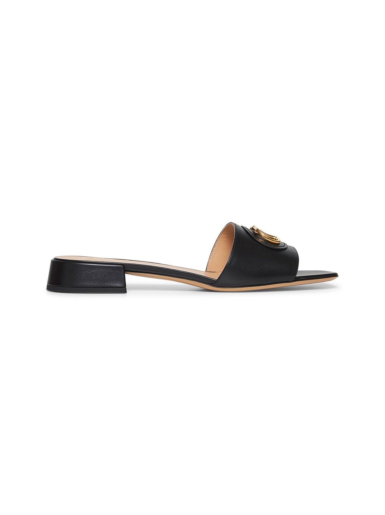 Valentino Garavani Women Black Calfskin Vlogo Signature Slide Sandals