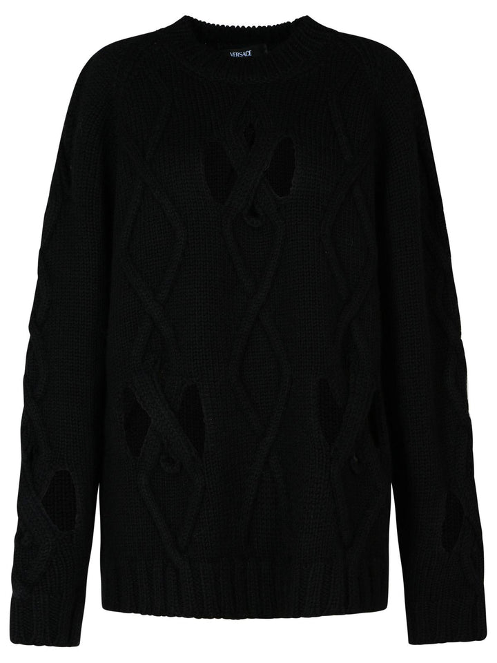Finished crew neck, tone-on-tone stitching, wide knit details on the front and back, ribbed cuffs and hem