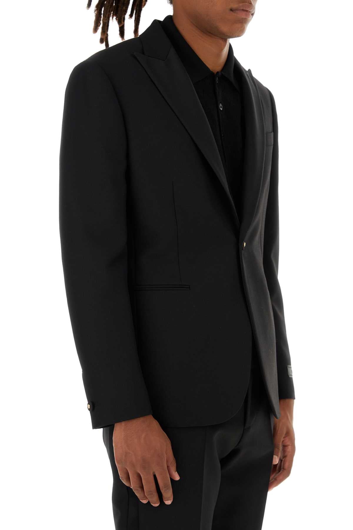 Versace Men Black Wool Blend Blazer >
