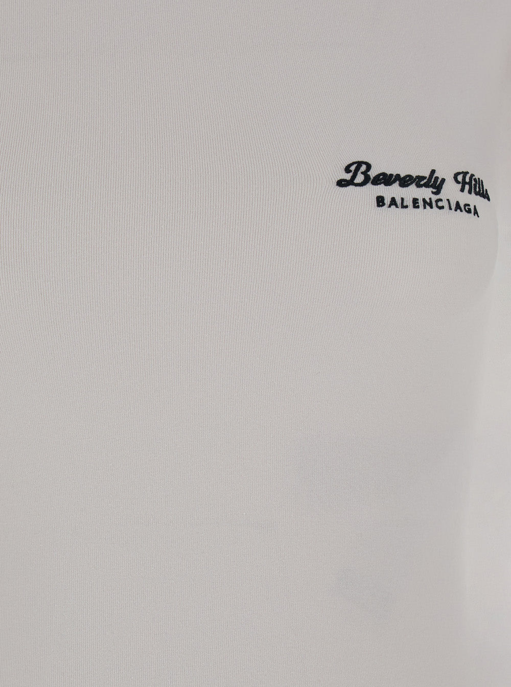 Balenciaga Women Off White T-Shirt With Beverly Hills Embroidery In Peeling Stretch Jersey Woman