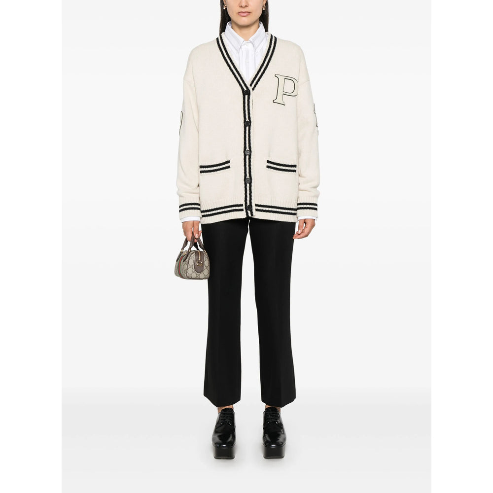 black wool blend interlock twill weave concealed side hook and zip fastening mid-rise embroidered logo to the side two diagonal pockets to the sides pressed crease dart detailing faux pocket detail straight leg slight flare