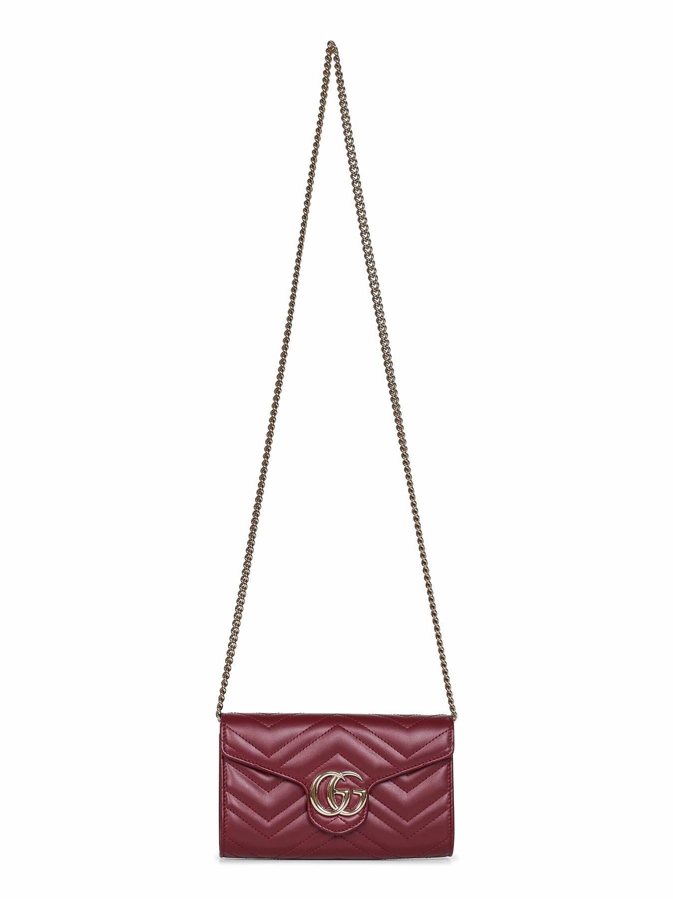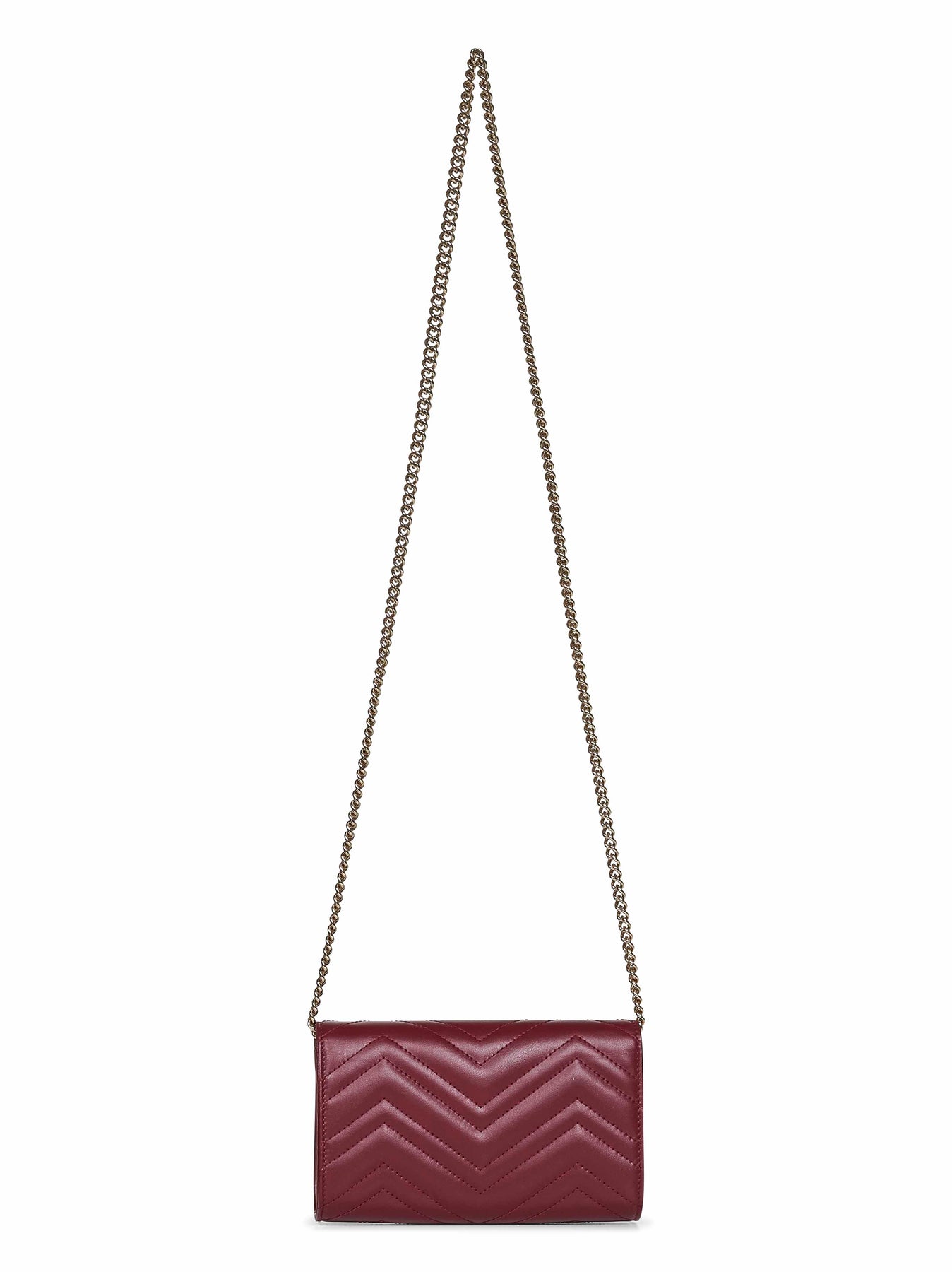 Gucci Women Burgundy Gg Marmont Wallet On Chain