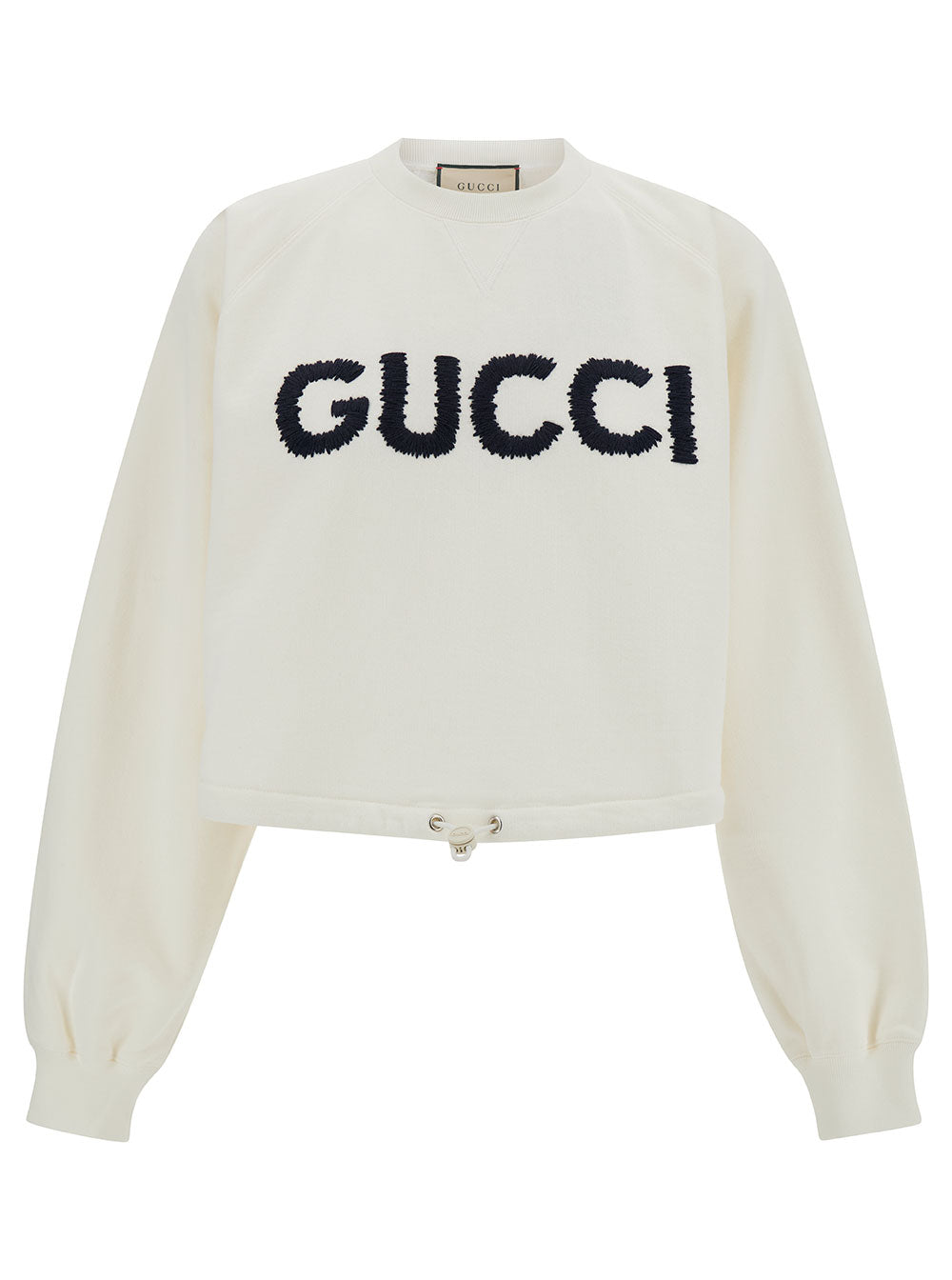 Gucci Women White Cropped Crewneck Sweatshirt With Logo Print In Cotton Woman