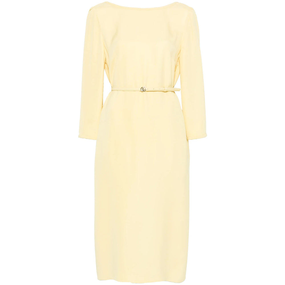 lemon yellow concealed side zip fastening detachable and adjustable waist belt draped panel detail scoop back