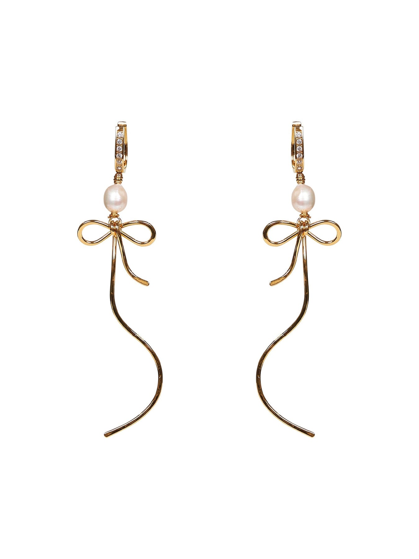 Marni Women Gold Bow Drop Earrings With Pearls >