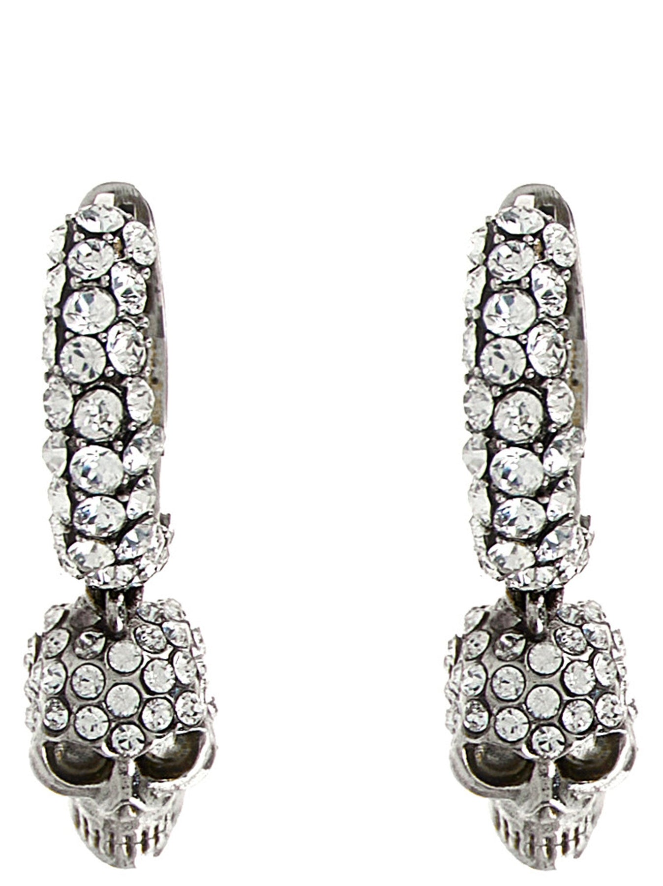 Silver metal earrings with rhinestone appliqué and Skull pendant, circle model. ITEM CANNOT BE RETURNED