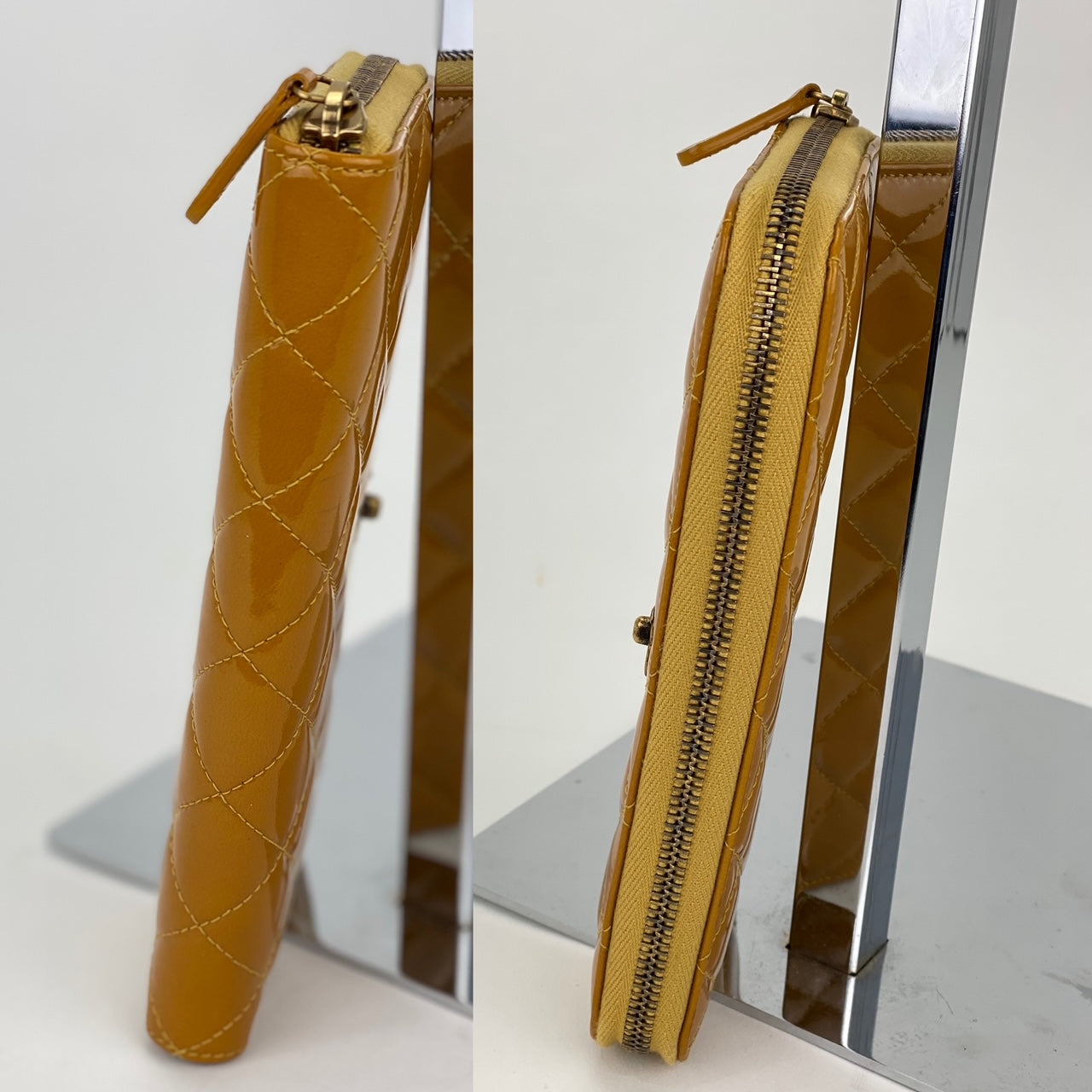Chanel Quilted Yellow Patent Leather Brilliant Zip Around Wallet Clutch