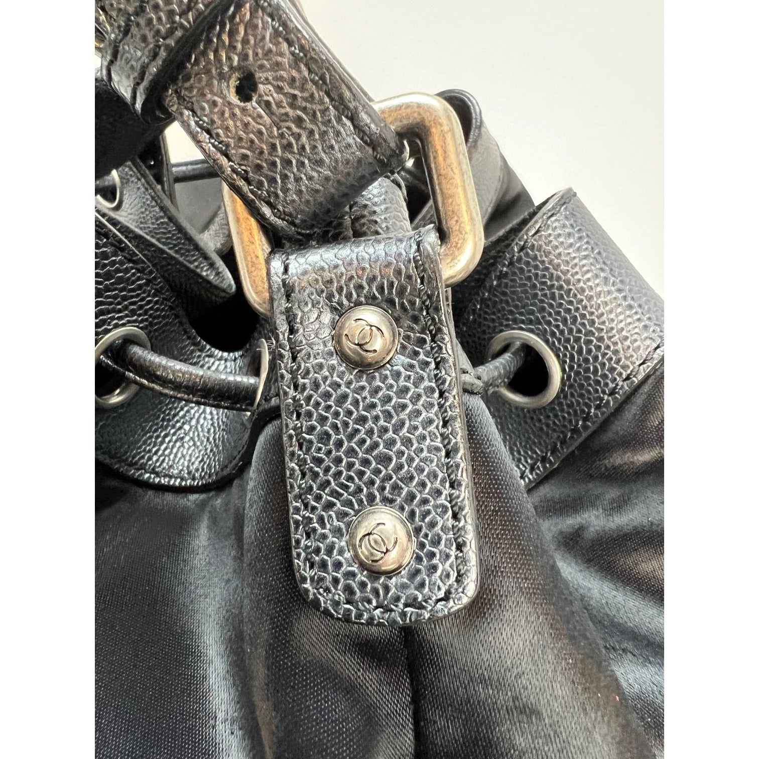 CHANEL Satin CC Large Black Bucket Shouler Bag
