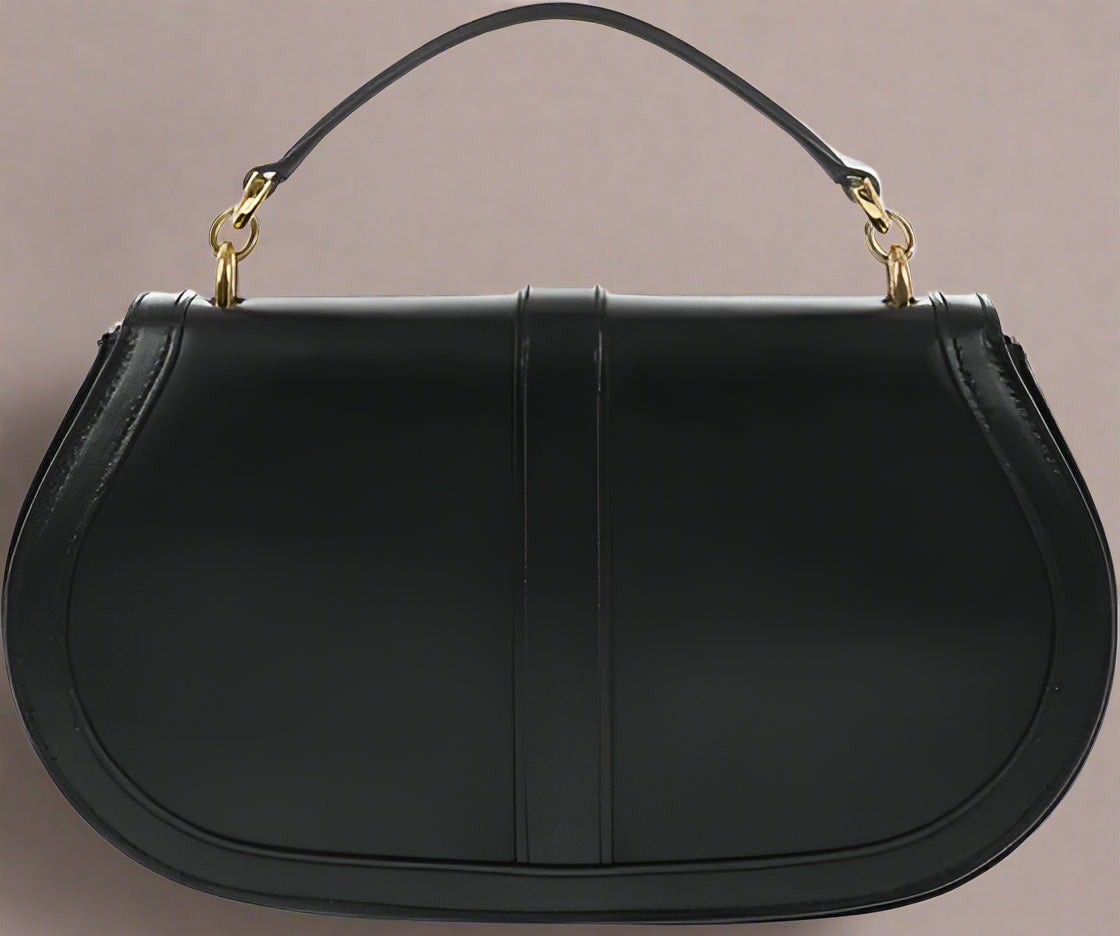 Elevate your style with the exquisite Versace Leather GRECA GODDES Saddle Bag. This Italian-crafted masterpiece showcases stunning golden metallic accents on a sophisticated black leather canvas. Perfect for Autumn-Winter, this versatile accessory features the iconic Versace logo, a convenient removable shoulder strap, and compact dimensions (26.5x14x7cm) that make it ideal for both day and evening occasions. The timeless solid color design ensures this luxurious handbag will complement any ensemble.