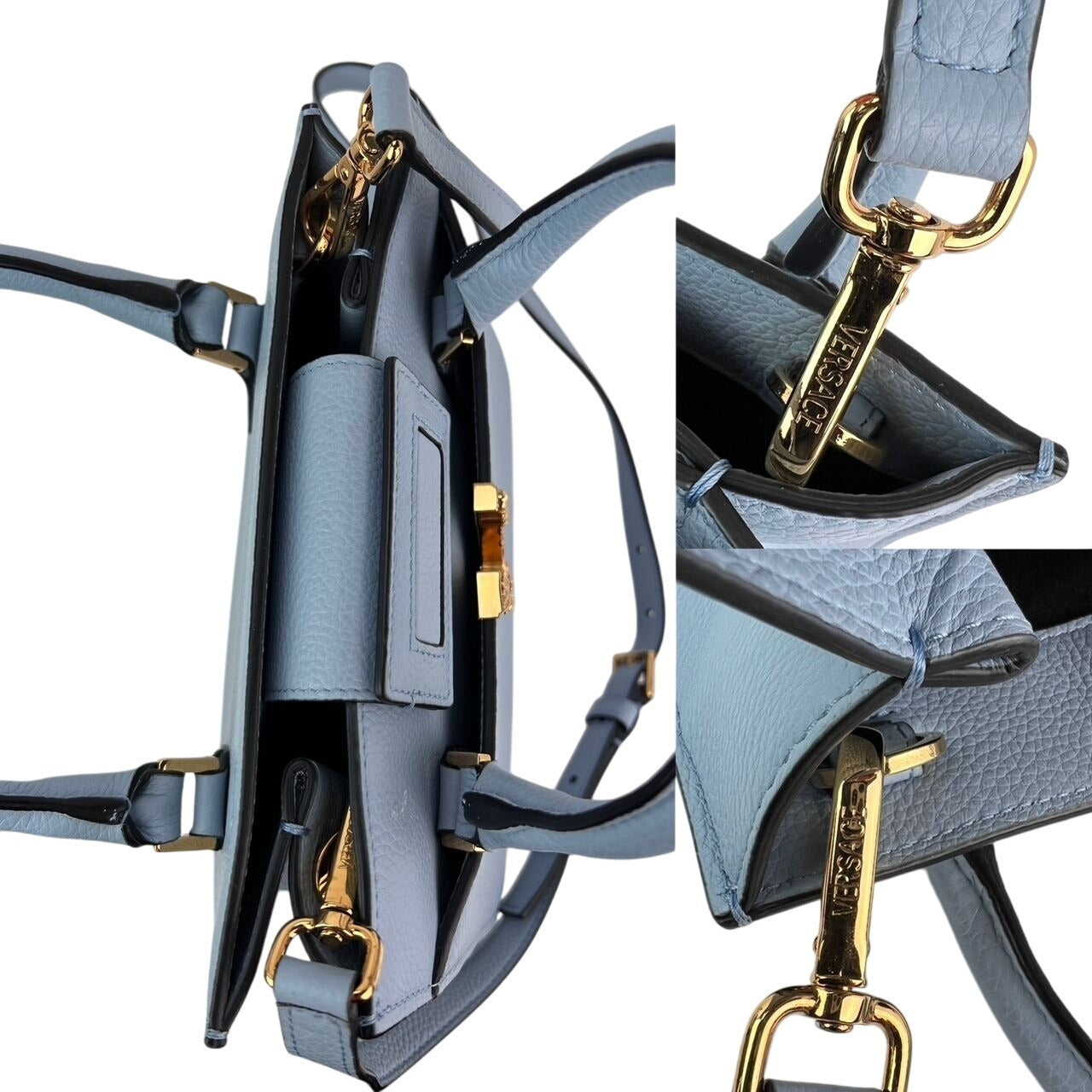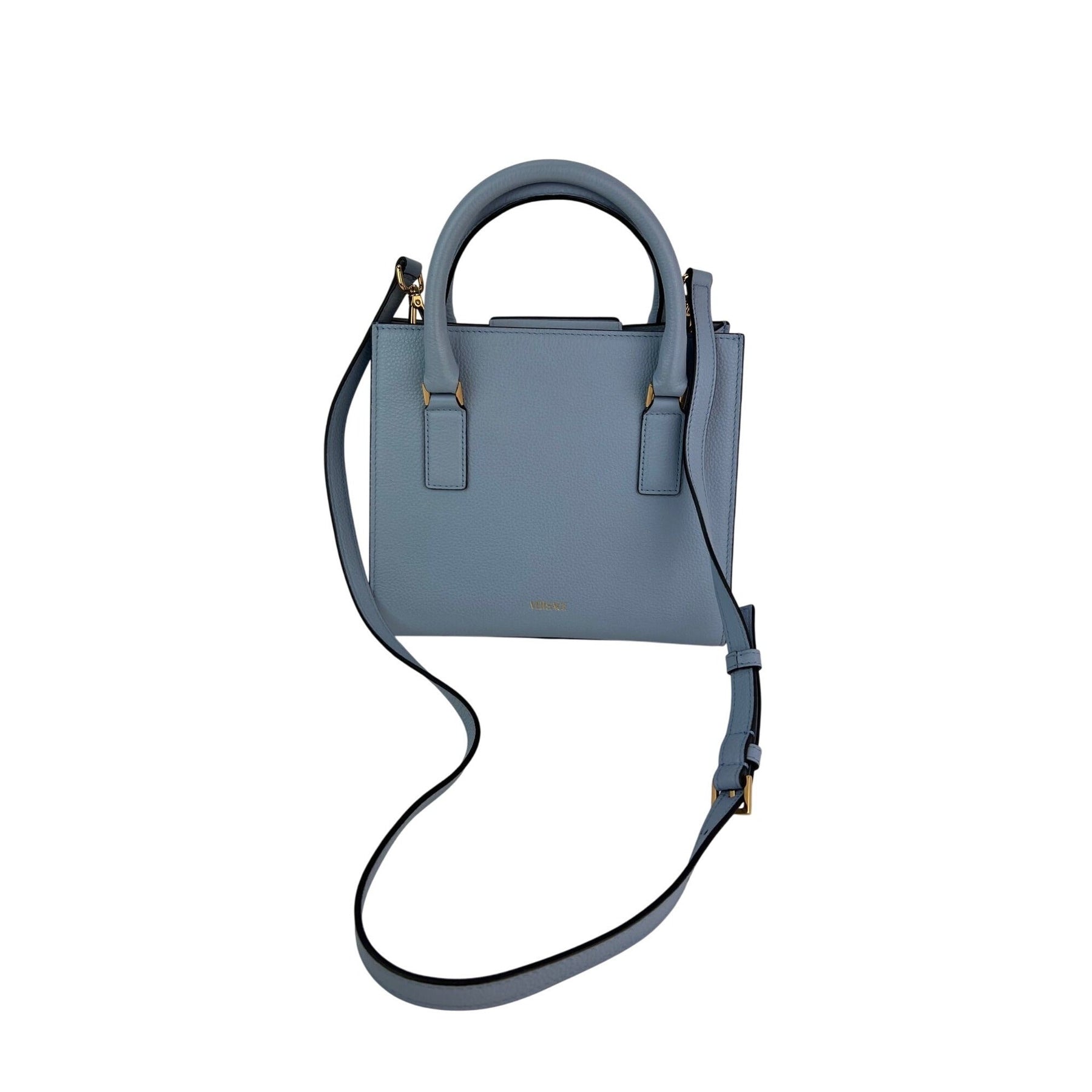 Versace Virtus Top Handle Grained Calfskin Light Blue Tote
