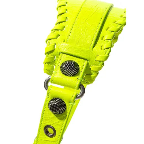 The Balenciaga YELLOW LEATHER HANDBAG is a must-have for those who appreciate luxury and style. Made in Italy, this handbag is expertly crafted from high-quality leather, ensuring durability and longevity. Its vibrant yellow color adds a bold touch to any outfit, making it a versatile choice for both casual and formal occasions. But what sets this handbag apart is its fast delivery. You won't have to wait long to get your hands on this stunning accessory, as it will be delivered to your doorstep in no time. Elevate your fashion game with the Balenciaga YELLOW LEATHER HANDBAG.