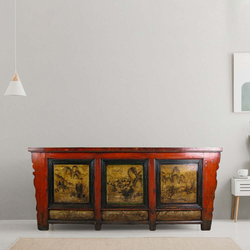 Gansu 85" Long Red Hand Painted Chinese Sideboard