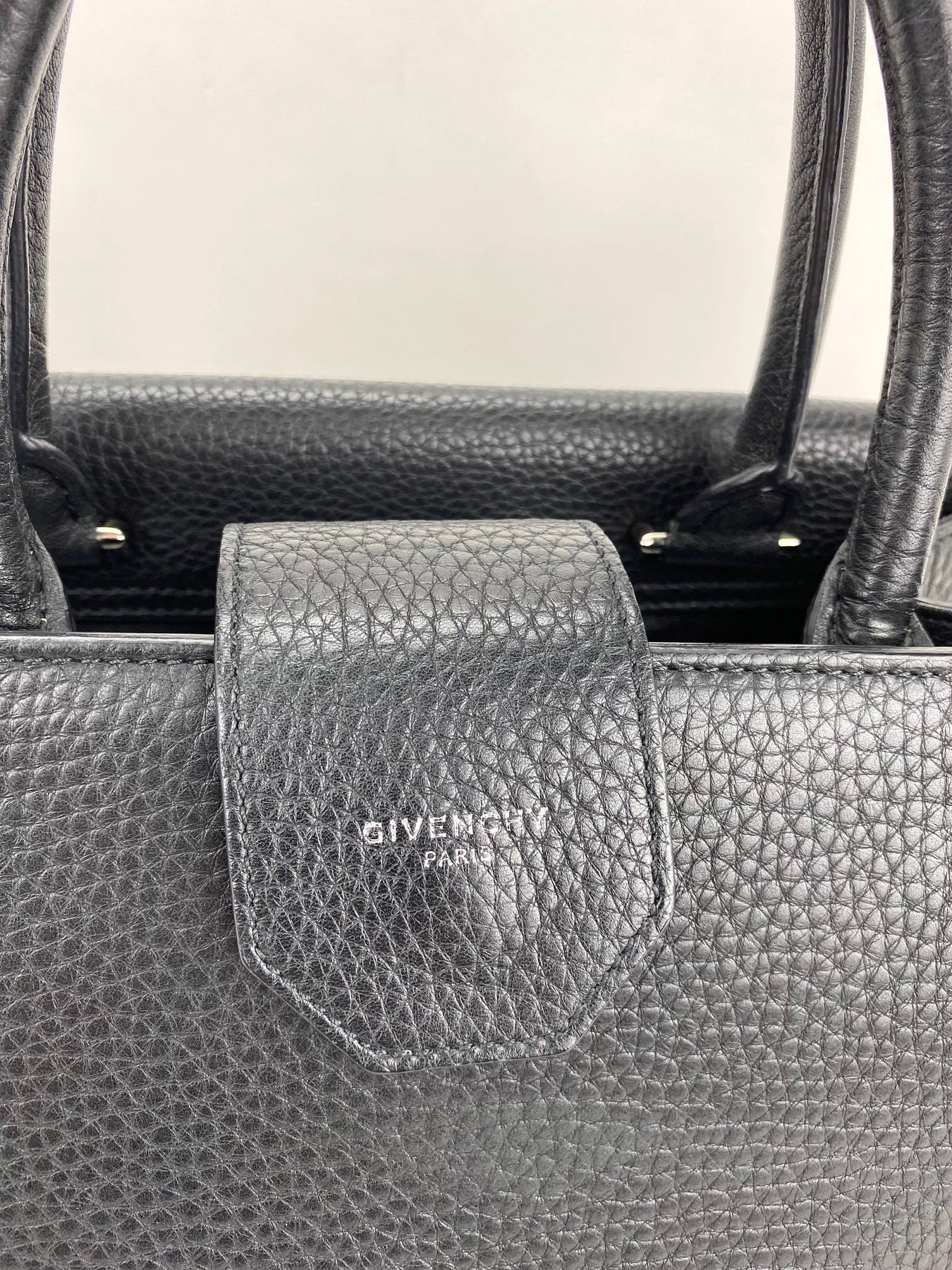 Givenchy Obsedia Medium Flap Black Pebbled Calfskin Satchel Hand Bag >