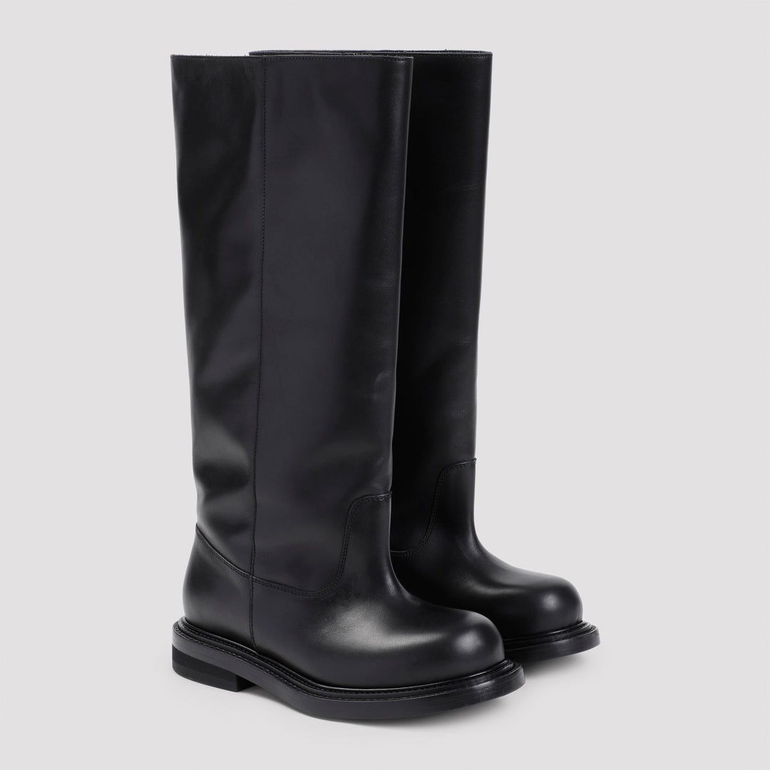 Moschino Black Leather Boots. Pure black leather boots, round toe, tonal stitching, knee-high, tonal sole. Leather | 100%LEATHER Heel Hight: 2,5cm